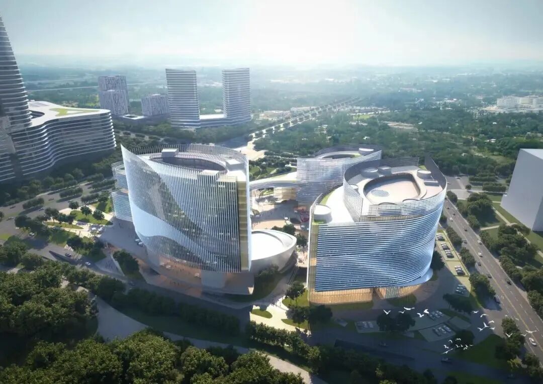 光谷文化中心项目位于光谷三路以东,九峰一路以南,高新大道以北,梅溪岭公园以西,南侧接11号地铁线,西侧有光谷三路高新大道公交站,总建筑面积26万平方米,包括4栋单体建筑。