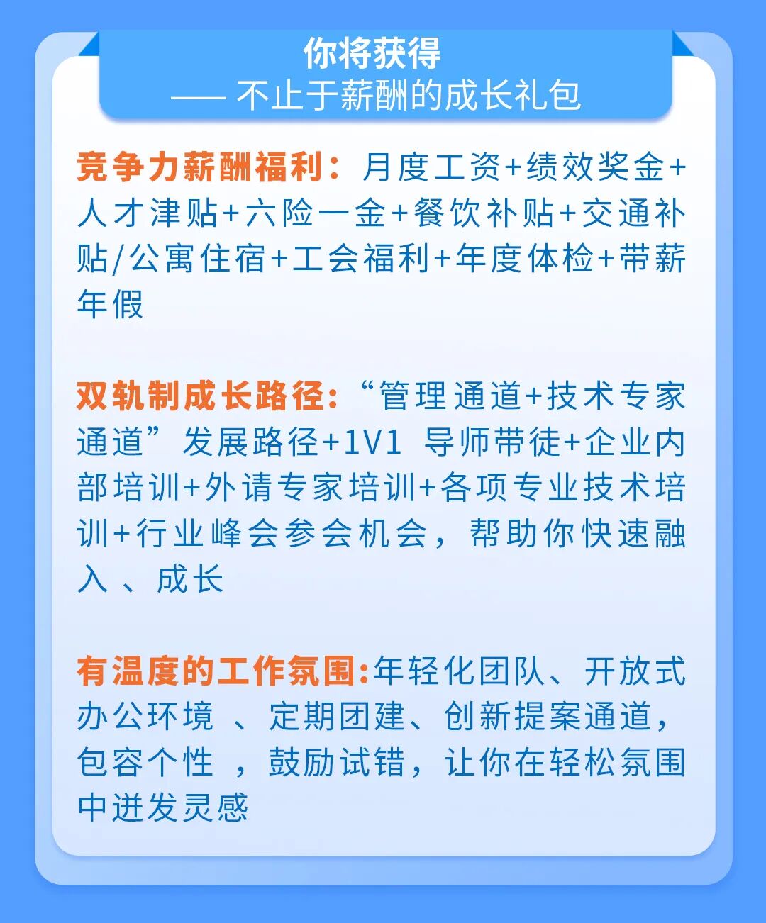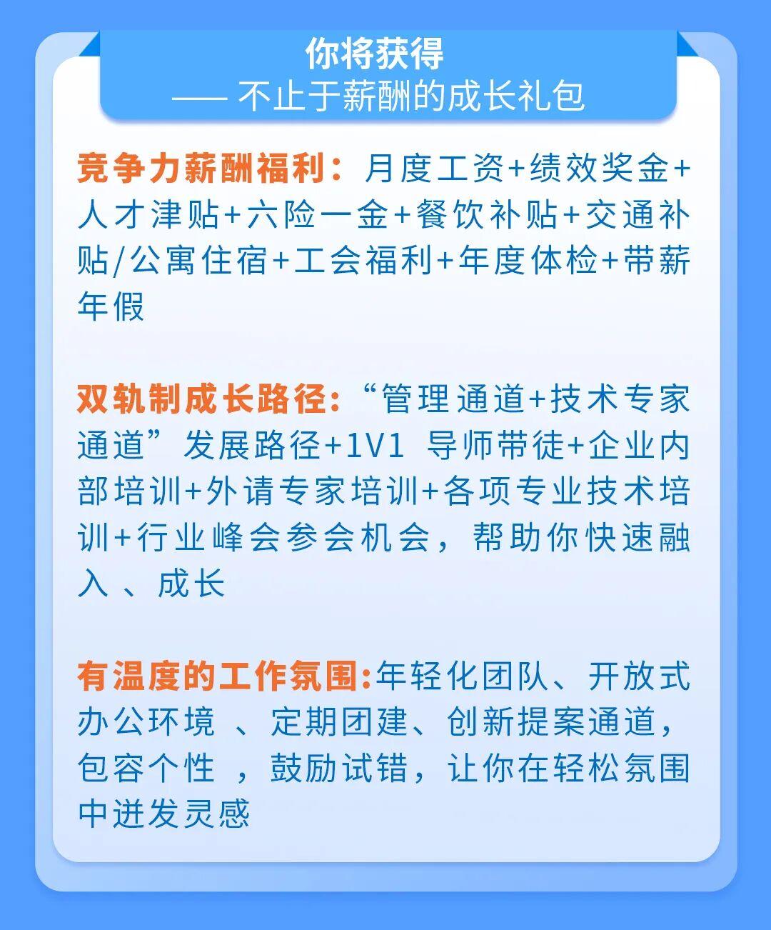 3、定期调薪,定期晋升,内部发展机会较多,内部专业横向转岗机会较多,亦可竞聘管理岗位。