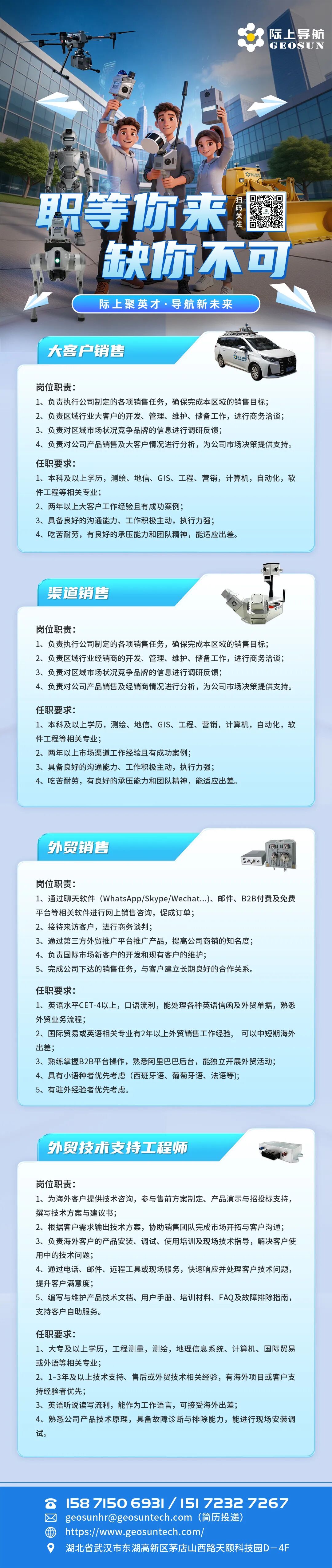 武汉际上导航科技有限公司是一家集软硬件研发、系统设计于一体,从事多传感器组合定位测姿系统、移动激光扫描系统、无人智能定位感知系统、智能驾驶车辆高精度组合导航定位系统、道路实景信息采集系 统、智能驾驶真值参考系统等研发、生产、销售、服务和培训的国家高新技术企业。拥有完全自主知识产权,致力于应用卫星定位(GNSS)、 惯性导航(INS)、视觉定位(VL)、激光雷达(LIDAR)、同步制图定位 (SLAM)等专业技术,为各种目标提供空间状态和周围场景的感知信息。